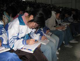 在黄老师的热情鼓舞下,在充满激情的现场气氛中,同学们气势高涨,信心倍增,每个人都强烈要求成为“杰出青少年自我管理班级”的一员。同学们齐声朗读:“今天将是一个不朽的日子,今天将是一个播种的时刻。我会用才智创造辉煌,用实力独占鳌头,用毅力完成一切。不管我昨天的成绩如何,我将全身心投入到自我管理课程中,练就自己钢铁般的意志。”