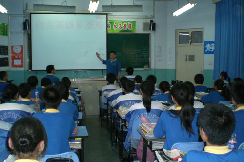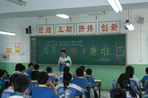 班会过后,很多学生将蒲松龄的一幅对联记在了自己的笔记本上——有志者,事竟成,破釜沉舟,百二秦关终属楚;苦心人,天不负,卧薪尝胆,三千越甲可灭吴。