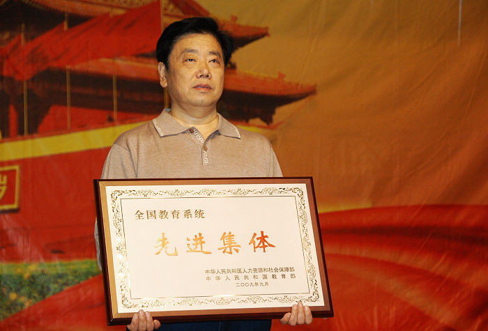 在喜迎新中国成立60周年和适逢我国第25个教师节之际,我校在国家人力资源社会保障部和教育部的联合表彰活动中被授予“全国教育系统先进集体”荣誉称号。