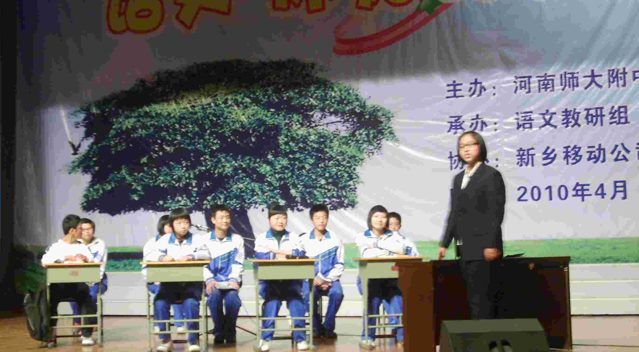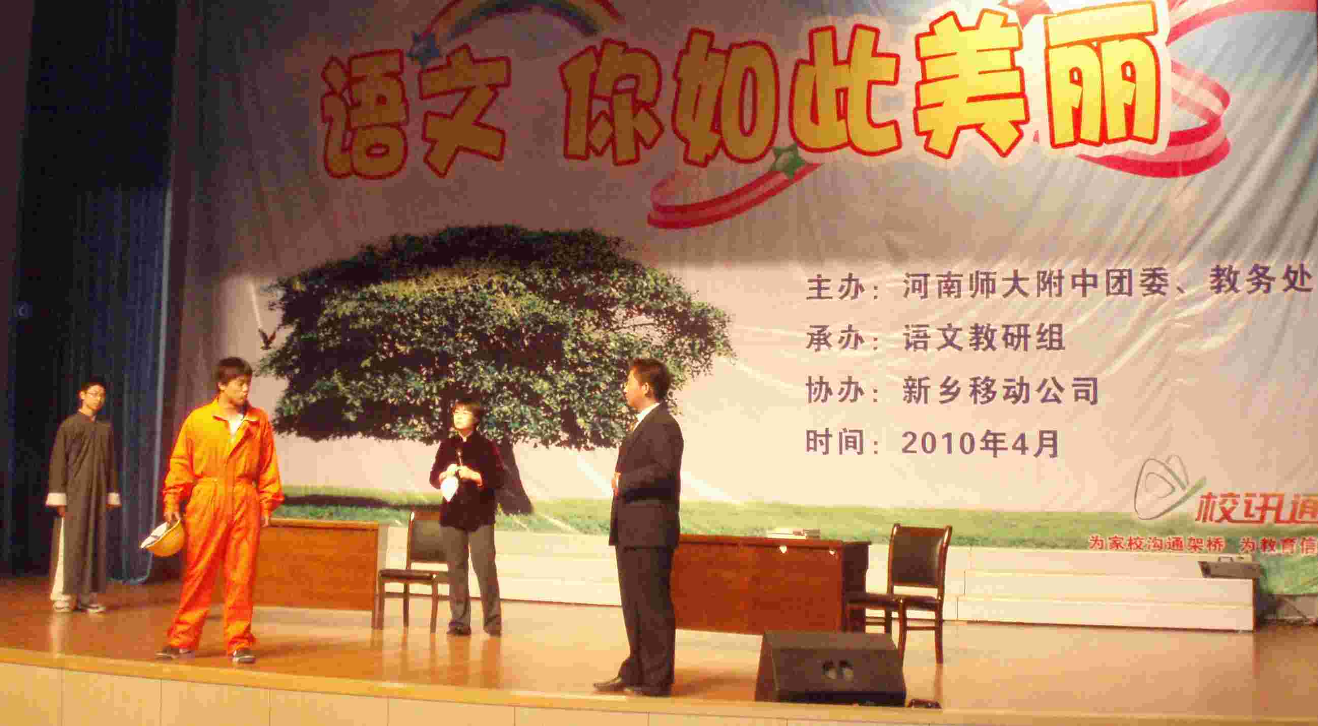 4月13日下午4时30分,由校团委、教务处主办,语文教研组,初、高中年级部承办的我校校园六大文化节之一——首届语文节课本剧汇演在教工礼堂圆满举办。我校党委书记滑秀林、副书记刘齐晋等领导和师生观看了此次汇演,并给予高度认可。此次汇演同时得到新乡移动公司、河南师大踏浪话剧社的通力协办,并由新乡教育电视台录制报道。