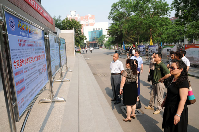 展板前吸引了众多家长驻足观看