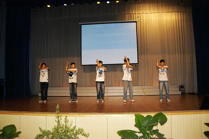 7月12日,韩国釜山国际中学师生一行30人到我校交流访问,受到我校师生的热烈欢迎。
