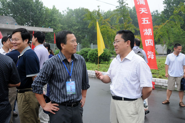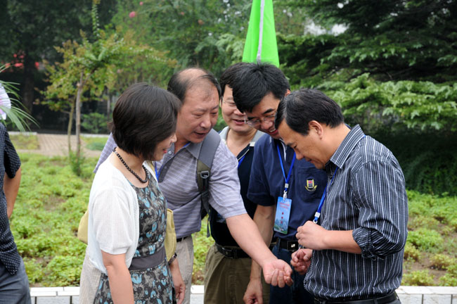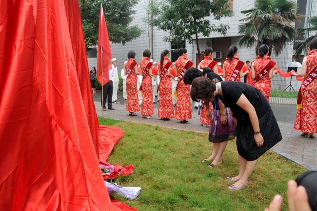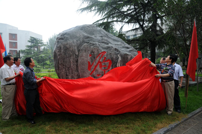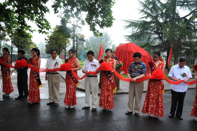 首先举行“源”字石揭幕仪式。8月14日上午8:00,前一天晚上冒着暴雨返校的众校友在纷纷细雨中赶往一号教学楼东侧的芸胜园内,为他们捐献的巨型景观石揭幕剪彩。巨石上镌刻着一个大大的“源”字,包涵着80届校友既饮水思源,又祝愿母校光荣办学传统源远流长的丰厚寓意。揭幕仪式上,滑秀林书记代表校党政领导讲话,刘平校友代表全年级同学发言。刘黎校长、滑秀林书记、老教师代表以及校友代表共同为巨石剪彩。当众校友重逢故园并与阔别多年的恩师相见时,那份激动与欣喜,化作一幕幕握手、拥抱的感人场面与一片欢声笑语。现场气氛十分热烈。