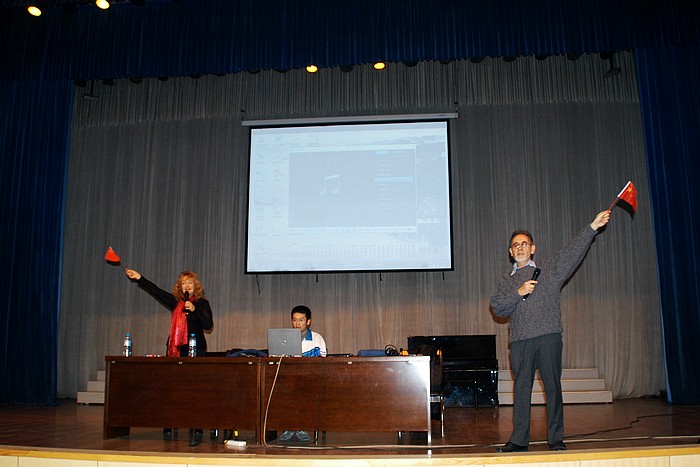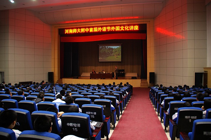 11月18日下午,西校区教工礼堂坐无虚席,笑声不断,为迎接我校首届外语节隆重召开,校团委、英语教研组特意邀请了我校国际教学部两名新西兰外籍教师John和JUlian为国际部全体学生、初二年级部分学生代表及全体英语组教师作了一场外国文化讲座。讲座在欢快的音乐中拉开序幕,在共唱中华人民共和国国歌和新西兰国歌中加深了彼此之间的友谊,两名外籍教师在讲座中语言风趣幽默,并通过图片、视频等丰富的形式向大家介绍西方特别是新西兰的美食、人文景观、教育等文化内容。讲座内容充实详尽、生动幽象,赢得了同学们阵阵掌声,欢声笑语洋溢在整个礼堂中。此次讲座不仅进一步增强了我校师生学习英语的热情,也进一步了解西方的先进文化,让大家收获颇丰。