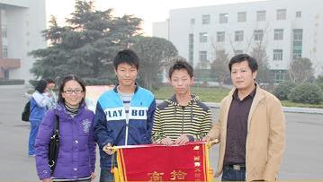 11月30日下午,2号教学楼高三本部教师办公室来了两位给学校送锦旗的特殊的客人。原来,11月28日,高三本部6班学生马乐天、朱振宇两位同学在校外捡到一个公文包,内有银行卡若干张,身份证和驾驶证等,想方设法联系上失主,及时交还。失主非常感激,特送锦旗一面,并对附中良好的育人环境表示了高度赞扬。