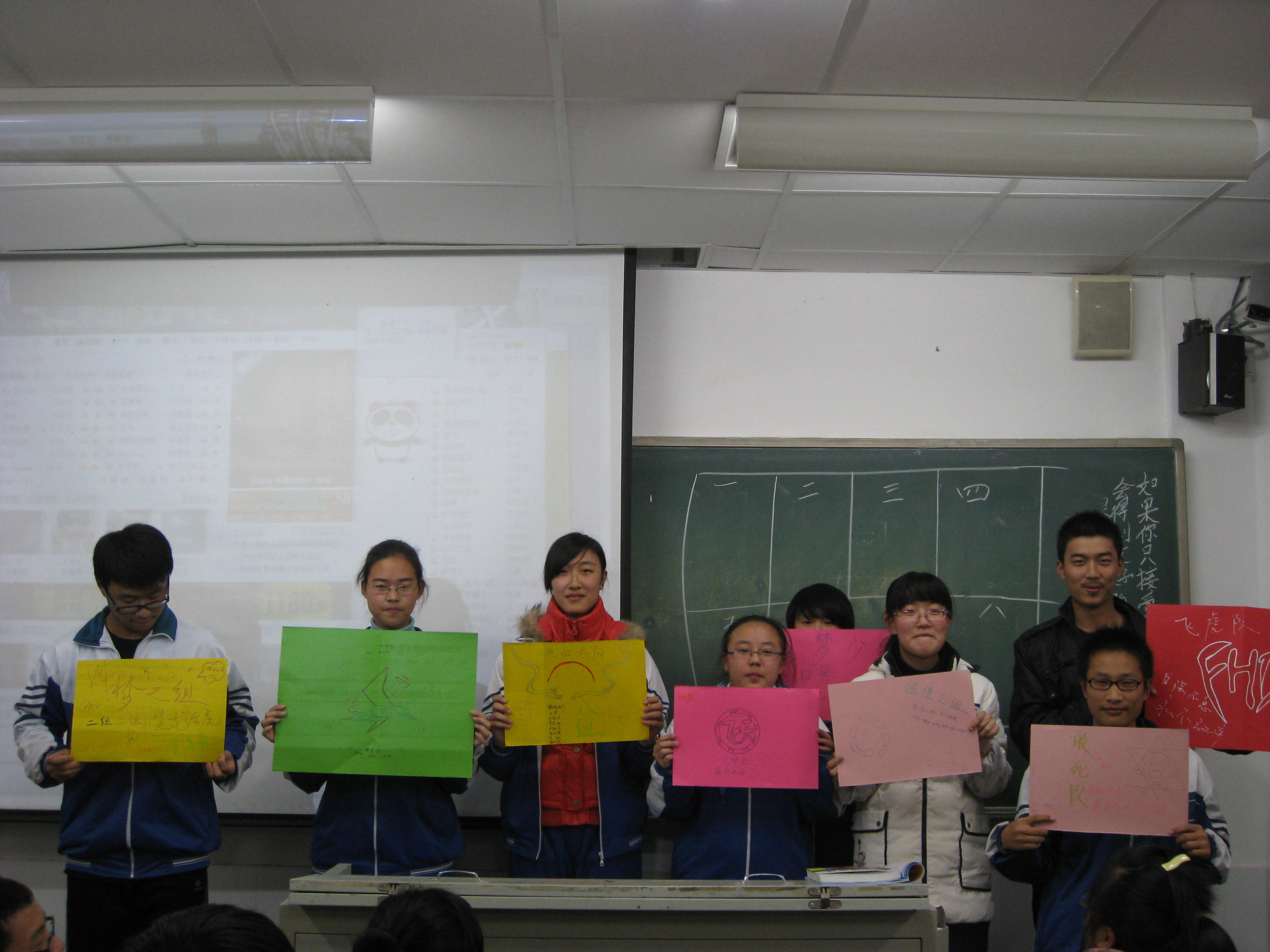 启动仪式的第二步是建立自我管理学习团队,明确队名、口号以及团队标志。老师先让同学们快速、安静变为七人一组的小队,进行小组组长的选举。要求每位同学都要充满激情的对小组成员说出自己的竞选词,比如:我叫XXX,如果我是组长,我将……。以此来增强同学们养成积极参与,公平竞争,勇于自荐,服务团队的意识。之后小组组长带领自己的组员在规定的时间内完成队名、口号以及团队标志的设计。活动通过这种方式,提高学生交流合作的能力,激发他们的团队精神和集体荣誉感。活动材料的局限决定了每一个小组都不能单独完成任务,这也促使了学生必须养成团队之间互相帮助,良性竞争的习惯。