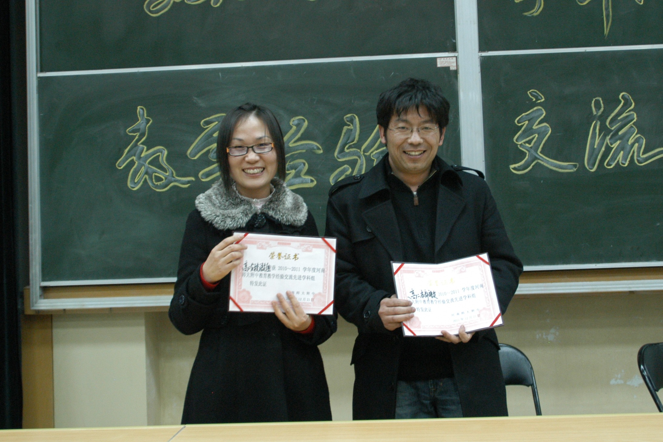 在比赛前,高中部赵振华主任首先致辞。他在致辞中介绍了前一段我校教改、课改的相关情况,并阐释了本次交流会的目的。在随后的比赛中十位选手紧紧围绕课改和教改的主题,结合教育教学实际,讲述了自己在“导学自主”教学改革中自己的感悟与心得。他们的发言各具特色,精彩纷呈,赢得了在场所有老师的阵阵掌声。最后,刘诗帅、王思齐老师荣获特等奖,其他选手分获一、二等奖,高二语文教学组被评为先进学科组。学校领导为所有获奖选手及获奖集体颁奖。