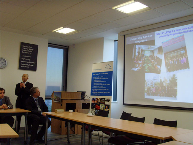 刚刚从英国纽卡斯尔传来的讯息:1月29日,中国驻英国曼彻斯特总领事馆的总领事倪坚先生访问了纽卡斯尔学院,正在纽院接受培训的我校国际部教师王晓玲、周睿、吴向辉受到了倪坚先生的亲切接见。期间,倪先生对我校和纽院的合作项目非常感兴趣,在聆听了纽院方面以及我校人员的有关介绍后,对该跨国文化教育合作项目给予了高度评价,并表示会长期关注此项目,进一步了解项目的进展情况。