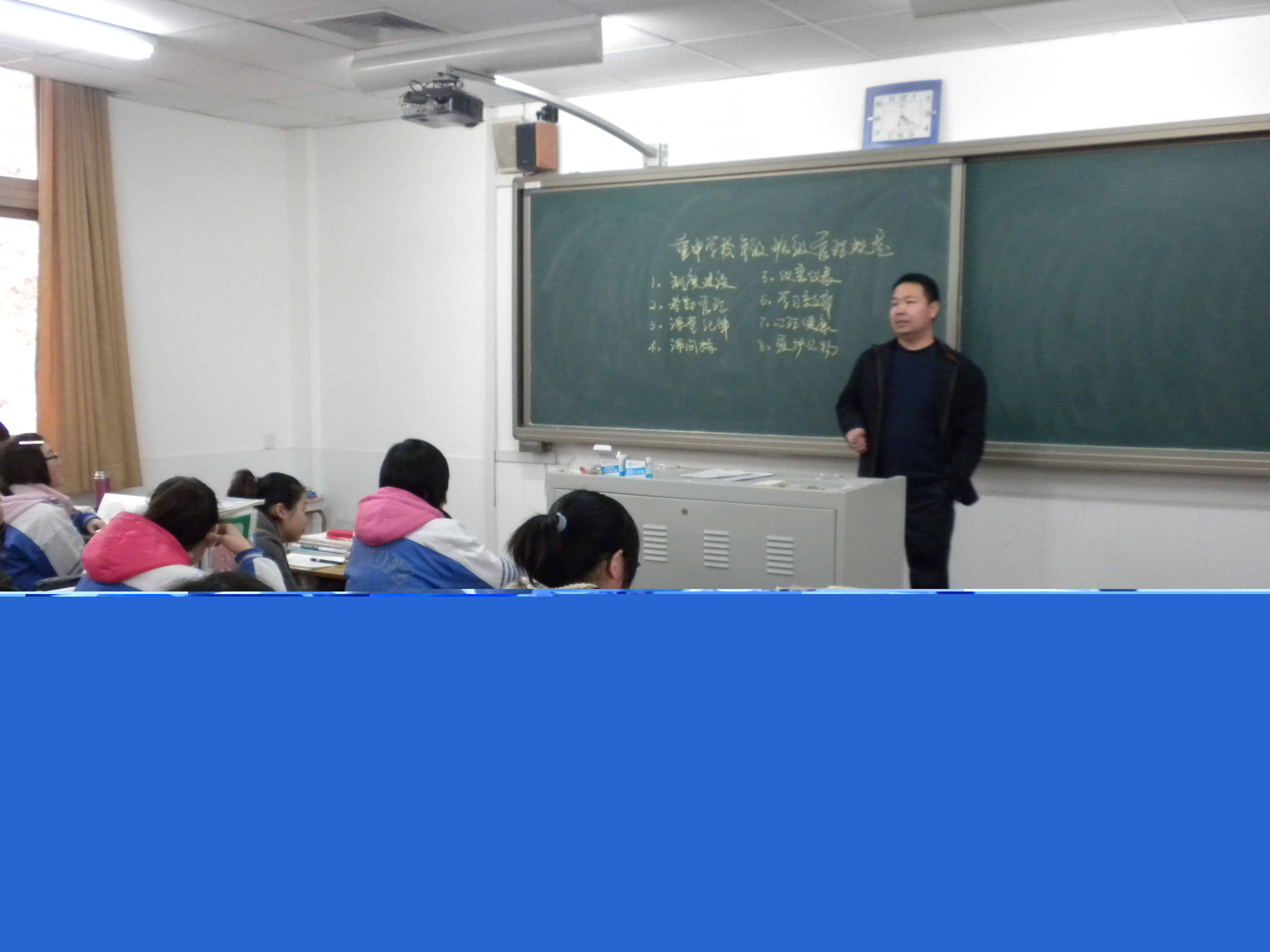 在班会上,各位班主任老师带领学生们学习《河南师大附中学生手册》,重申学校各项常规纪律,把各项要求落到实处,做到不迟到,不早退,遵纪守法,文明礼貌,尊敬师长,团结师长,团结同学。课堂上全神贯注,认真听讲,刻苦学习,迎战高考。自习课保持安静,提高效率。课间操做到快、静、齐,展现班级团结奋进、昂扬向上的活力。切实增强安全观念,保证人身和财产的安全。努力营造团结紧张、严肃活泼、文明和谐、友爱互助的班风,为备战高考创造良好的班级文化氛围。