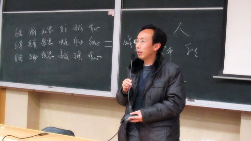 报告结束了,同学们若有所思,带着收获离开了。会场里还有学生留下来和刘主任交流自己的思想。虽然时间已经晚上十点,忙碌一整天的刘主任还是很耐心的和他们交流。“诲人不倦”的教育思想在刘主任身上得到了最深刻、最生动的体现。
