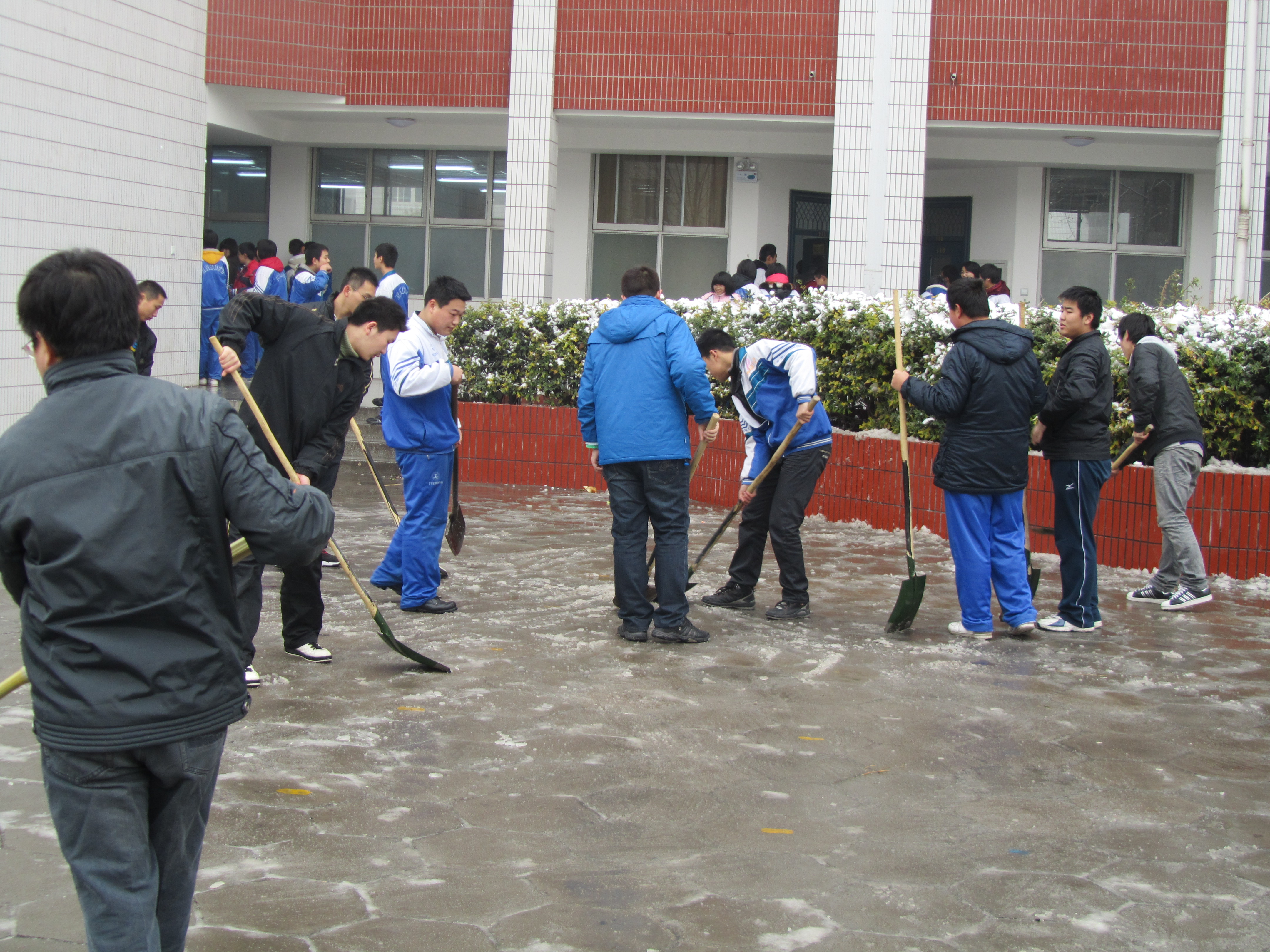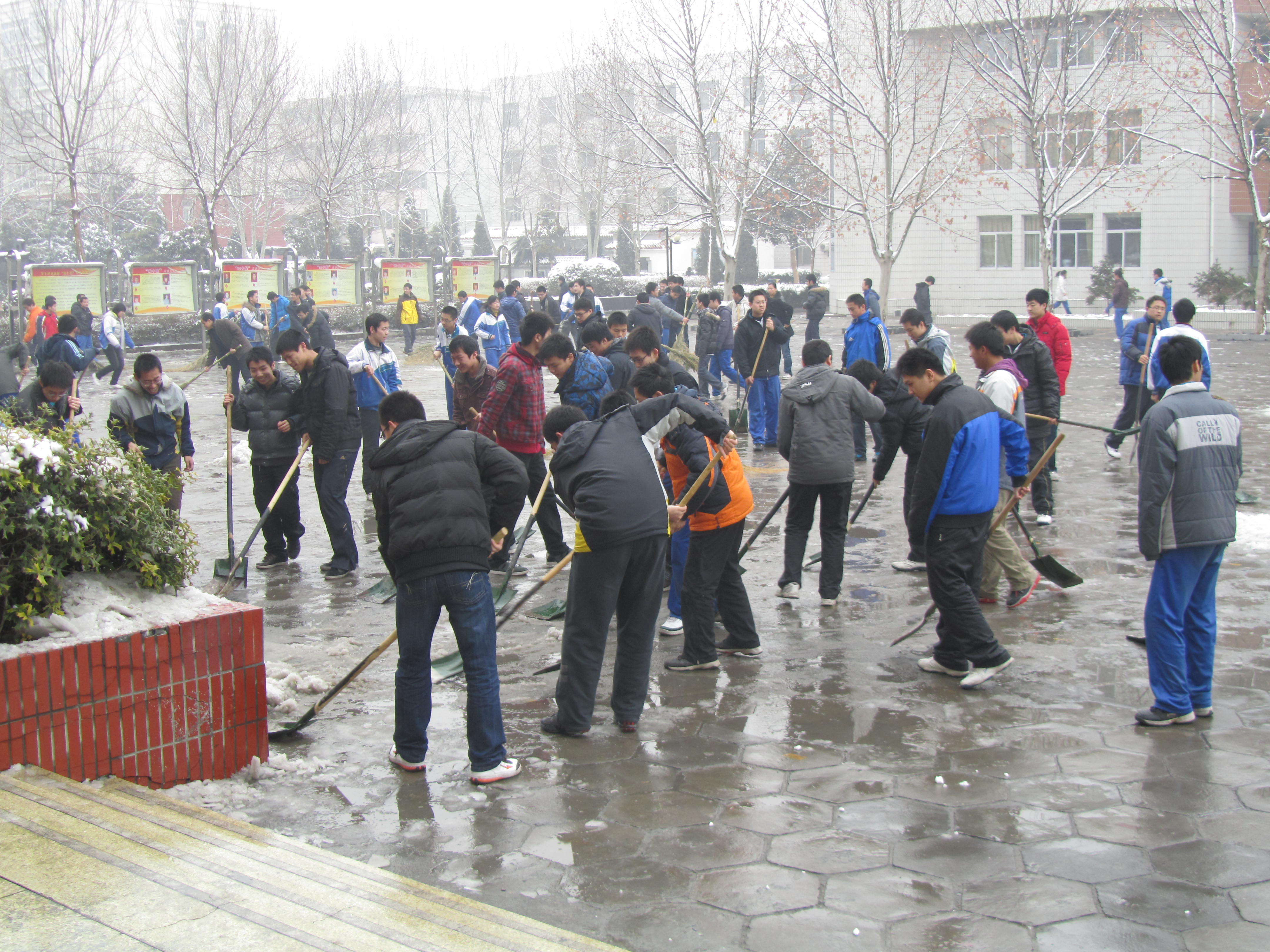 这两天,新乡地区普降大雪,在纷纷扬扬的雪花给大家带来欣喜的同时,雪化后冰滑的地面也给行走安全带来了威胁。3月1号,高三年级本部组织师生利用第三节后跑操时间铲雪,既锻炼了身体,方便了师生,又不耽误学习,赢得了全校一片赞叹声。