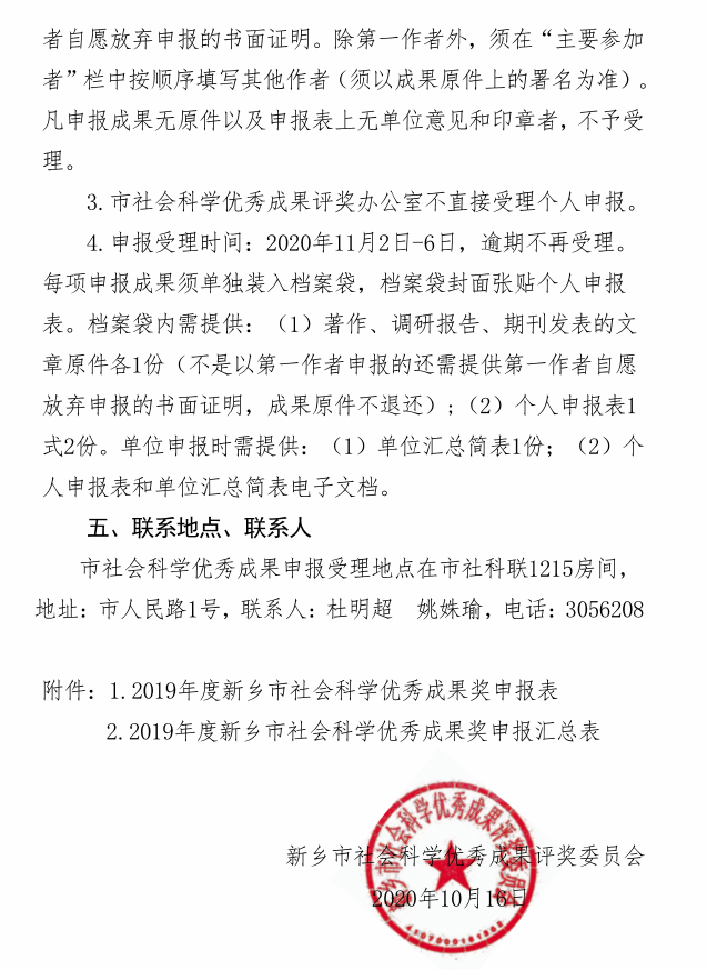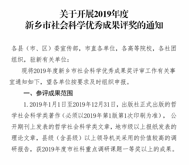 关于开展2019年度新乡市社会科学优秀成果评奖的通知