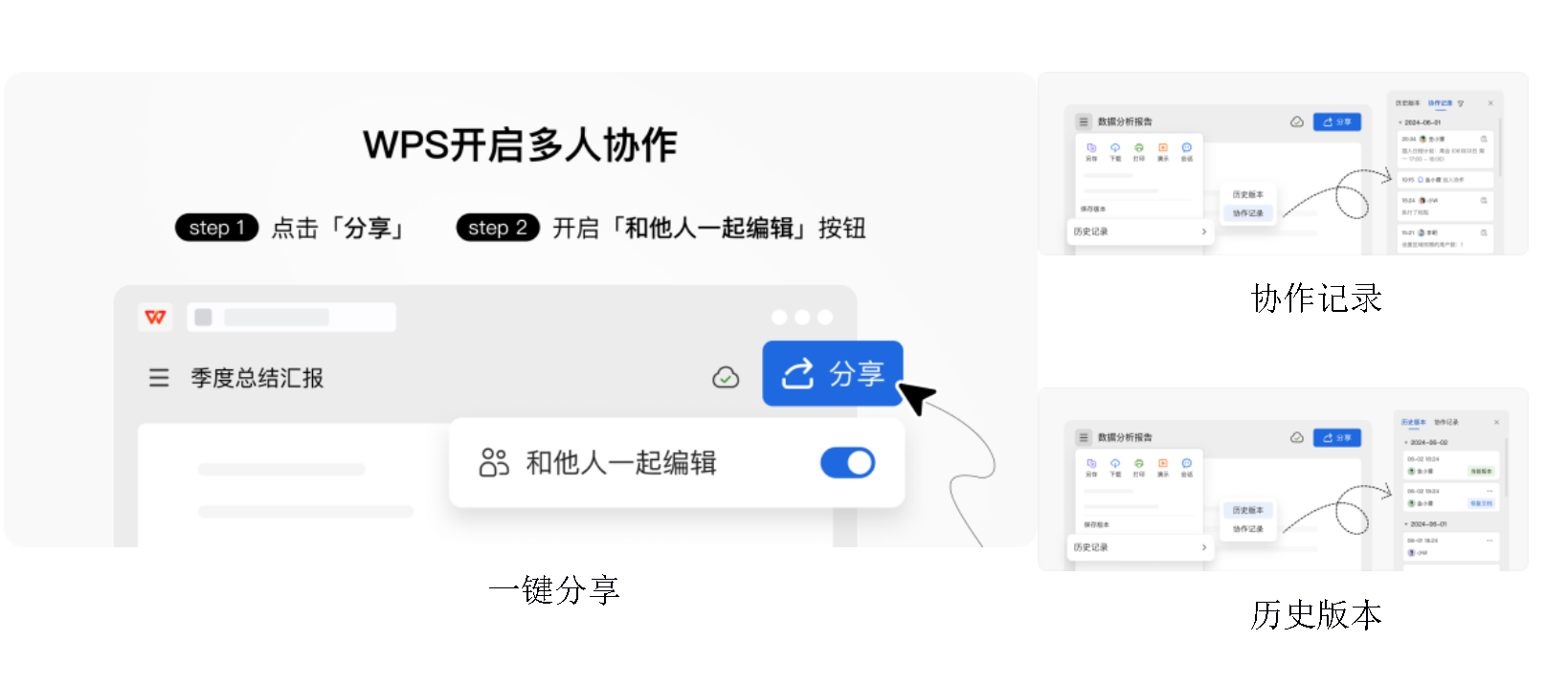 ◎高效协作:支持多人同时编辑文档,内容在线实时更新,历史版本可查看可复原,方便团队协作。