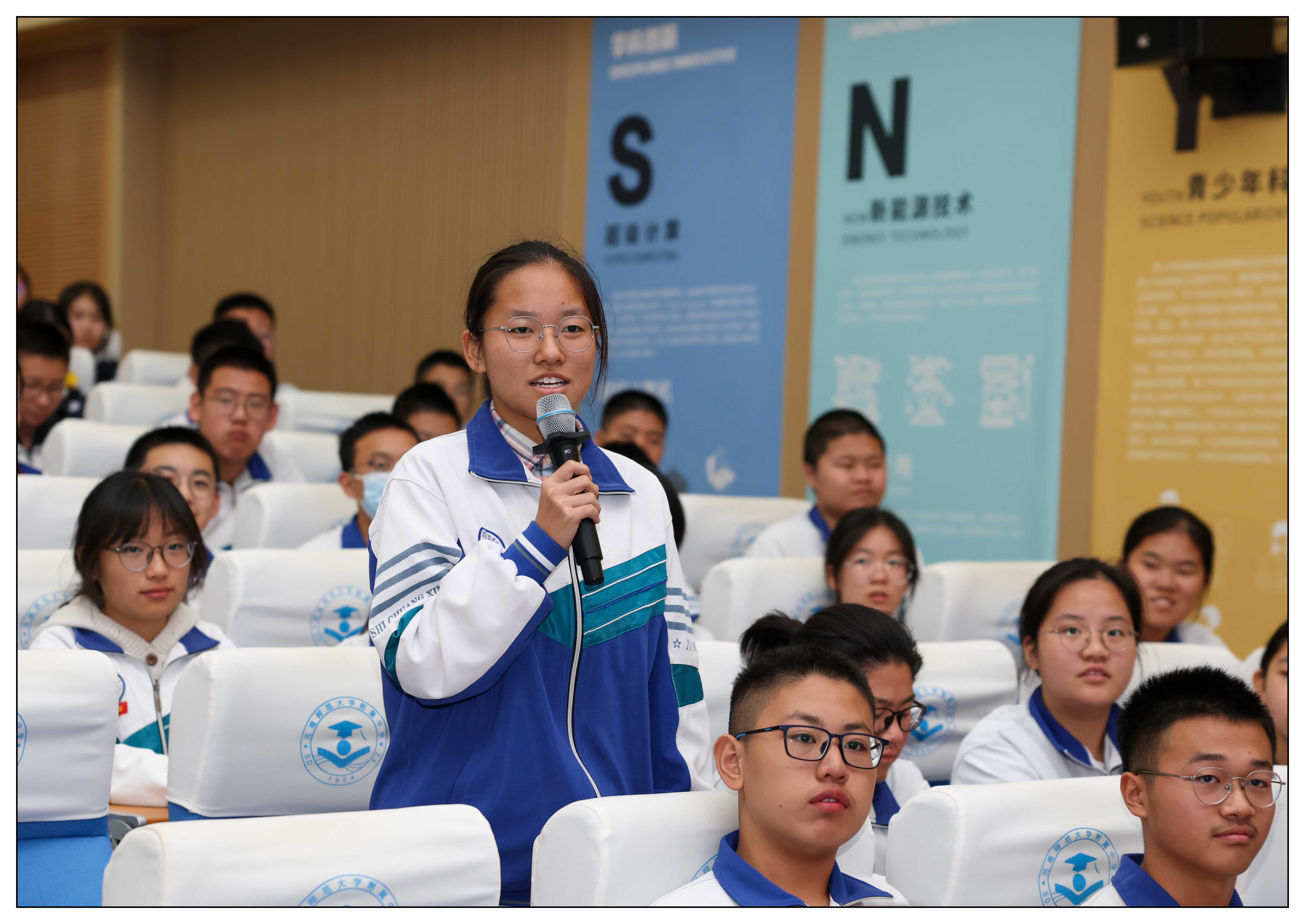 在报告后的互动环节,同学们踊跃提问,从“在科研中遇到困难怎么办” 到 “初中学生如何培养科学兴趣”,茹振钢教授都一一耐心解答:“对中学生来说,不用急着做‘大研究’,现在能做到‘上课认真听讲、课后多观察生活、遇到问题多问为什么’,保持对世界的好奇心,把每一件小事做扎实,就是在为科学‘打基础’”。茹振钢教授还在回答中特别强调:“虽然科学没有国界,但科学家却有自己的祖国。”他最后勉励同学们坚定不移听党话、跟党走,把实现个人理想价值与融入国家发展大局结合起来,努力成长为堪当民族复兴重任的时代新人。